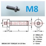 M8 IP Shear Bolts Button Head Gr10.9 Steel Zinc Plated