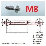 M8 IP Shear Bolts Csk Head A2 Stainless Steel
