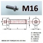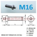 M16 IP Shear Bolts Csk Head A2 Stainless Steel